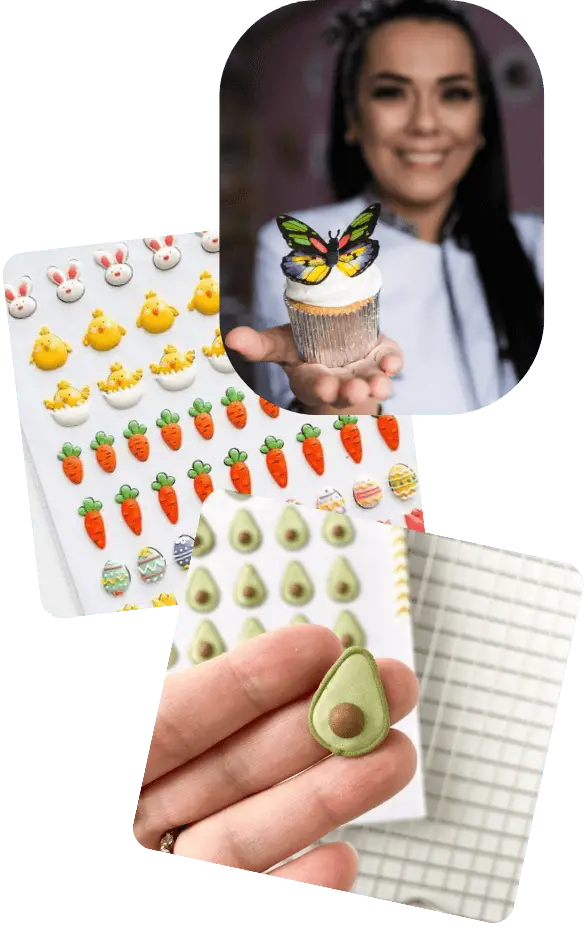 Diseños listos para imprimir o usar como guía, con temas como Fiestas, Celebraciones y Unicornios. Ideales para reposteras creativas.